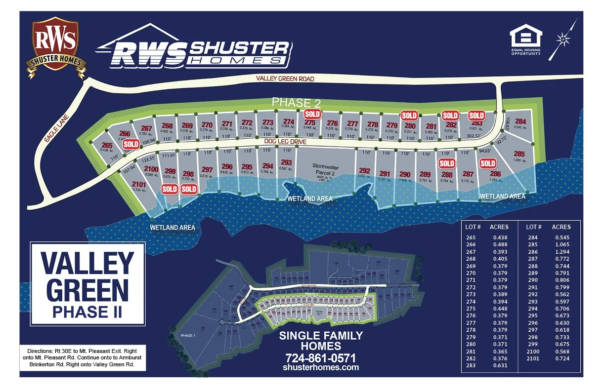 Located on a former golf course just a few minutes from Route 30, residents of Valley Green will have a short drive to all the shopping and dining options that Greensburg, Pa has to offer. Valley Green is located in Hempfield Township and is close to all the schools of Hempfield Area School District.